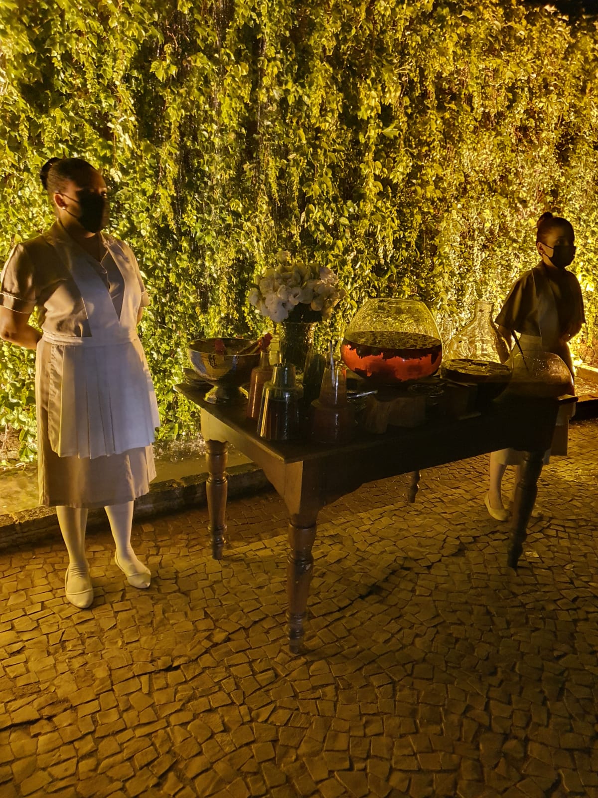 Até closing service vinham servidos, champagne, Scotch 12 years old, água, no bar instalado ao lado da pista de dança preparavam se todos os tipos de cocktail.