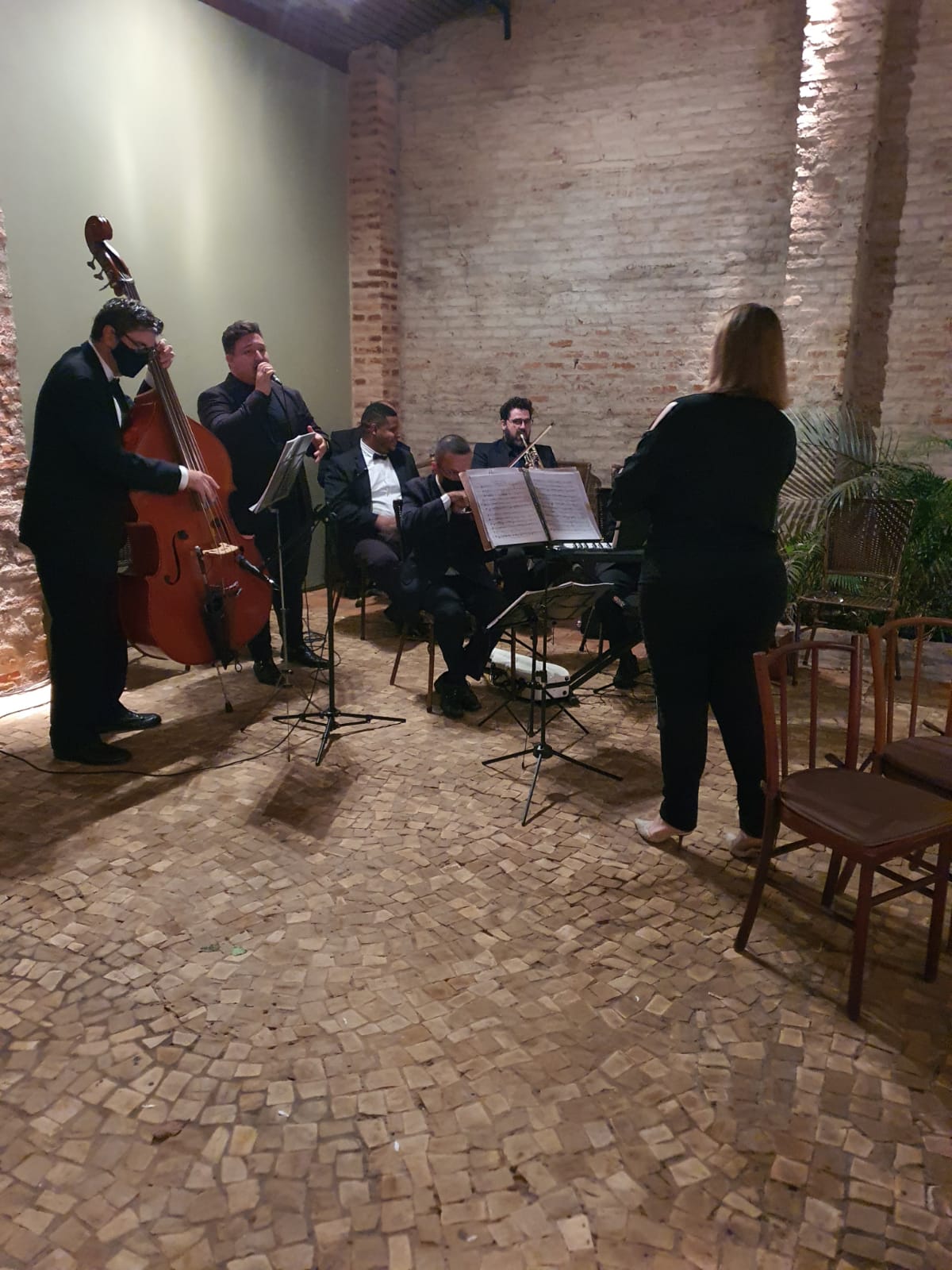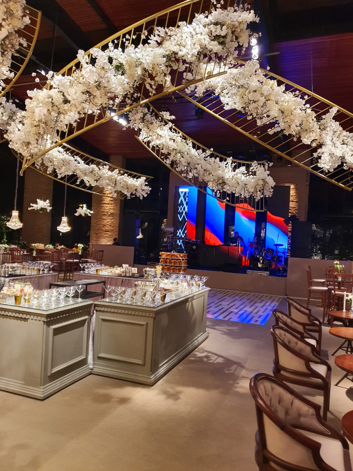 Na Capela instalada ao lado do salão de festas a noiva entrou para altar ao som da "Marcha Nupcial" de Felix Mendelssohn, o caminho todo enfeitado com margaridas, Gipsófilas e cravos brancos, nesse mesmo momento a Orquestra de Câmera também vibrou com "Hallelujah" de Leonard Cohen.