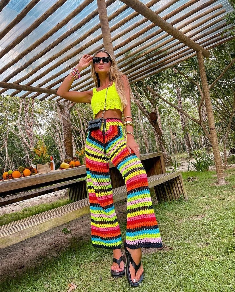 Nesse verão os looks de crochê trazem um estilo super divertido, bem colorido e vibrante com linhas neon.