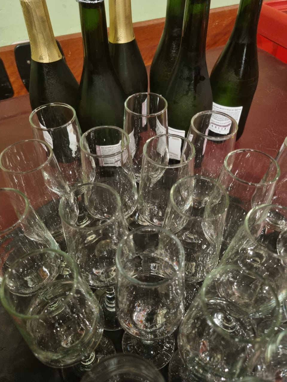 Com todos os livros autografados, o artista ganhou um coro de "parabéns a você", seguido de bolo e champagne.