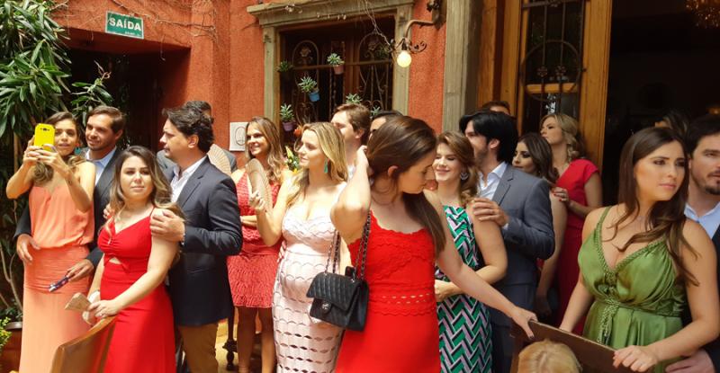 Na saída um buffet café closing service enquanto os vallets traziam os carros. Entre as delicadezas distribuídas com os "bem casados" pratinhos embrulhados com rendas douradas traziam suspiros com raspas de limão e em cada um mensagens de fé. Os noivos passam a lua de mel em Madri.