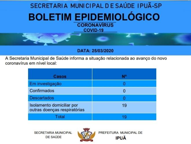 Em Ipuã não há casos investigados, nem confirmados. Apenas 19 pessoas isoladas em casa por outras doenças respiratórias.