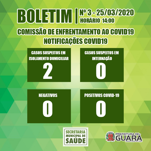 Em Guará, há dois casos suspeitos em isolamento domiciliar, mas nenhum confirmado até o momento.