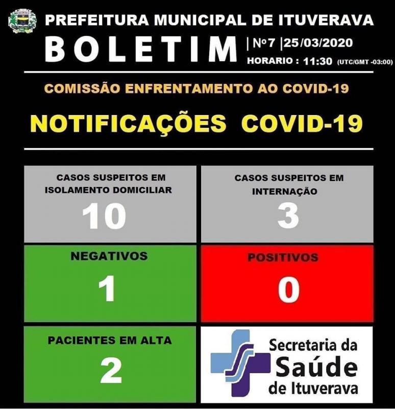 Em Ituverava, 10 casos suspeitos com isolamento domiciliar, 3 suspeitos em internação, 1 caso negativo, 2 descartados e nenhum confirmado.