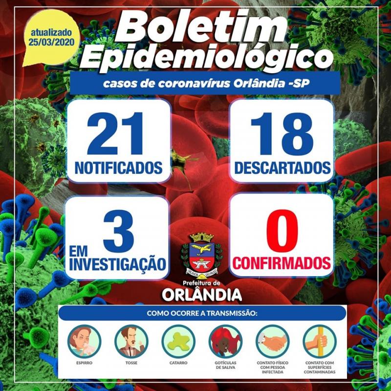 A microrregião também não apresenta casos de Covid-19. Em Orlândia, de acordo com o último boletim, são 21 notificações, 18 descartados, 3 investigados e nenhum casos confirmado.