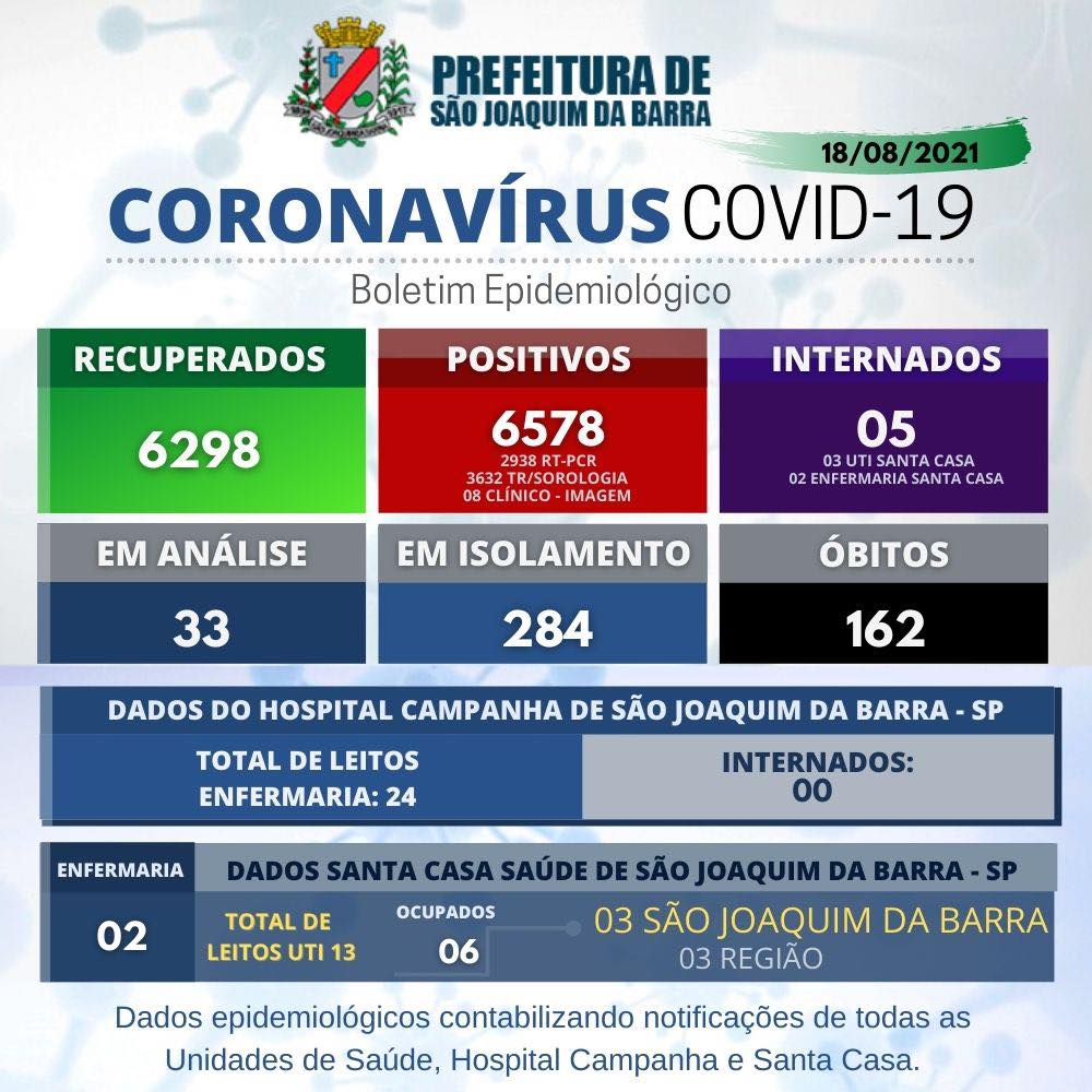 SÃO JOAQUIM DA BARRA NÃO REGISTRA NENHUM CASO DE COVID EM 24 HORAS