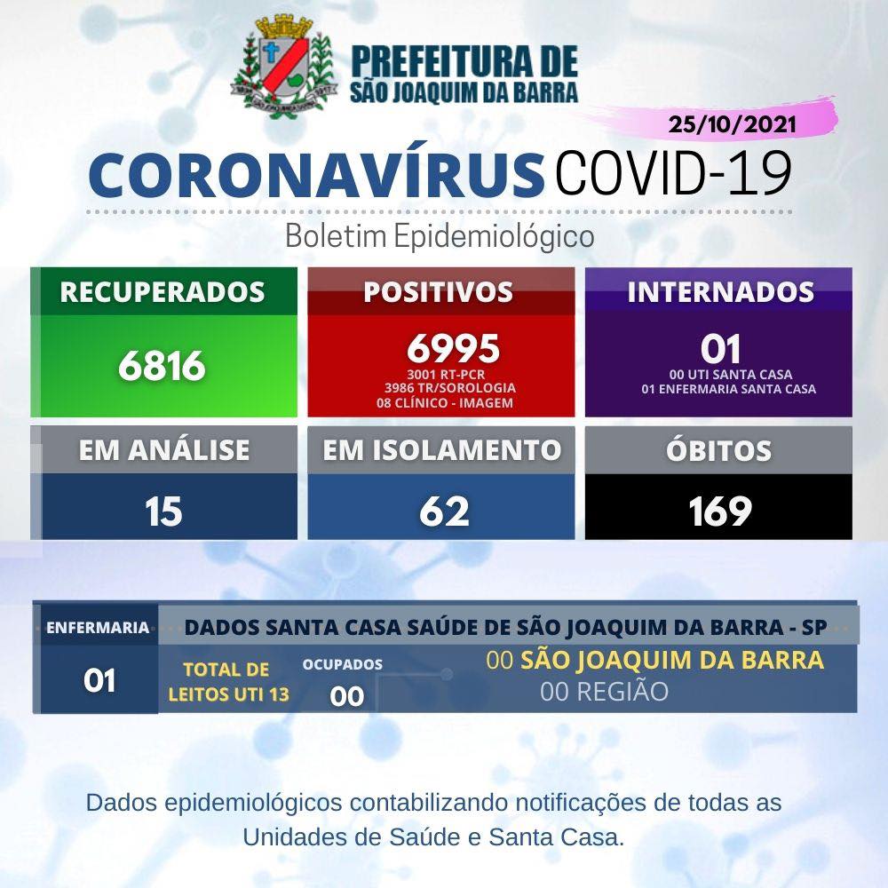 O boletim epidemiológico da covid-19 de São Joaquim da Barra desta segunda-feira (25) trouxe mais duas vítimas fatais.