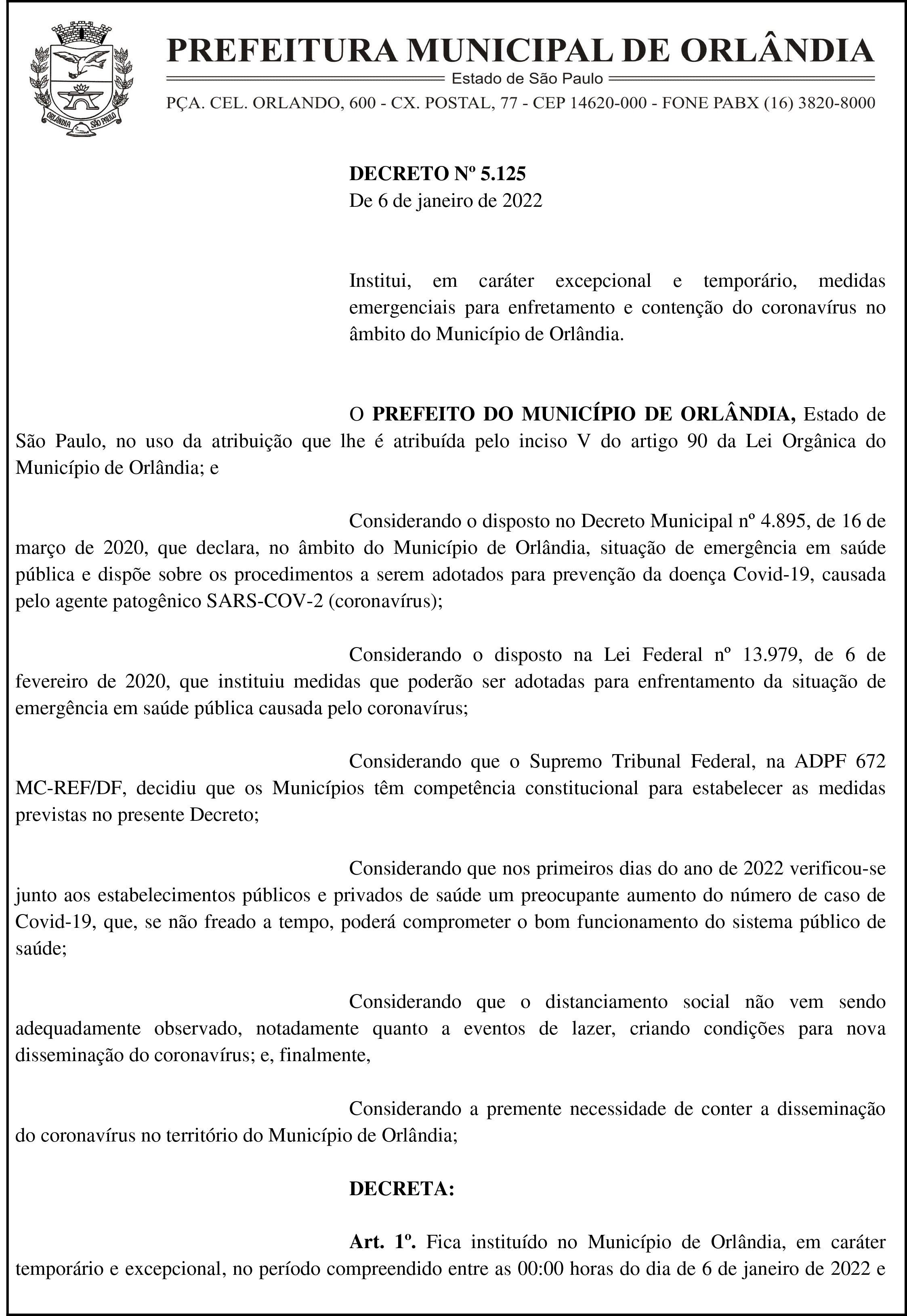 De acordo com o decreto houve um aumento expressivo nestes primeiros dias de 2022 de procura por serviços na saúde pública e privada e um "preocupante aumento do número de casos de Covid-19, que, se não freado a tempo, poderá comprometer o bom funcionamento do sistema público de saúde do município".