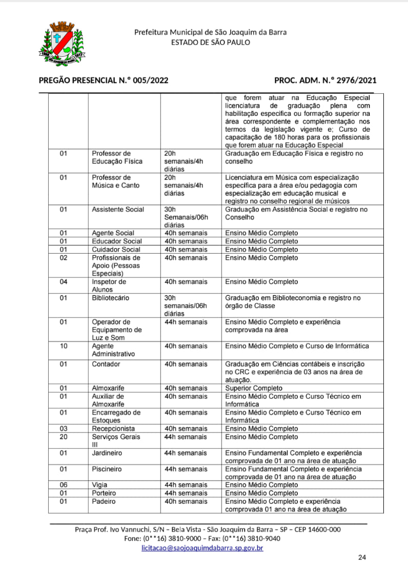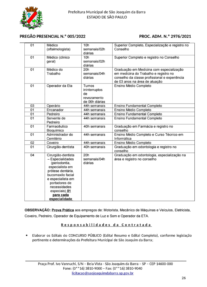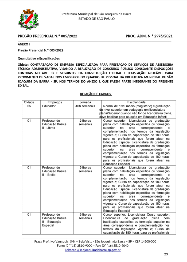 A prefeitura de São Joaquim da Barra publicou edital de licitação para contratar empresa de assessoria técnica visando a realização de Concurso Público. A licitação acontecerá no dia 4 de fevereiro e após definida a empresa, a data do concurso deverá ser mercada.