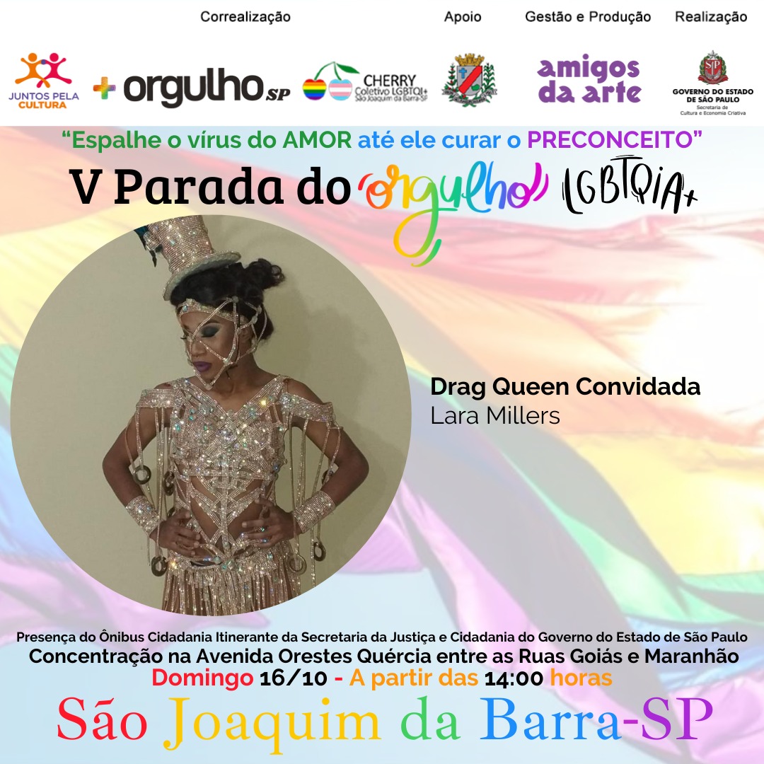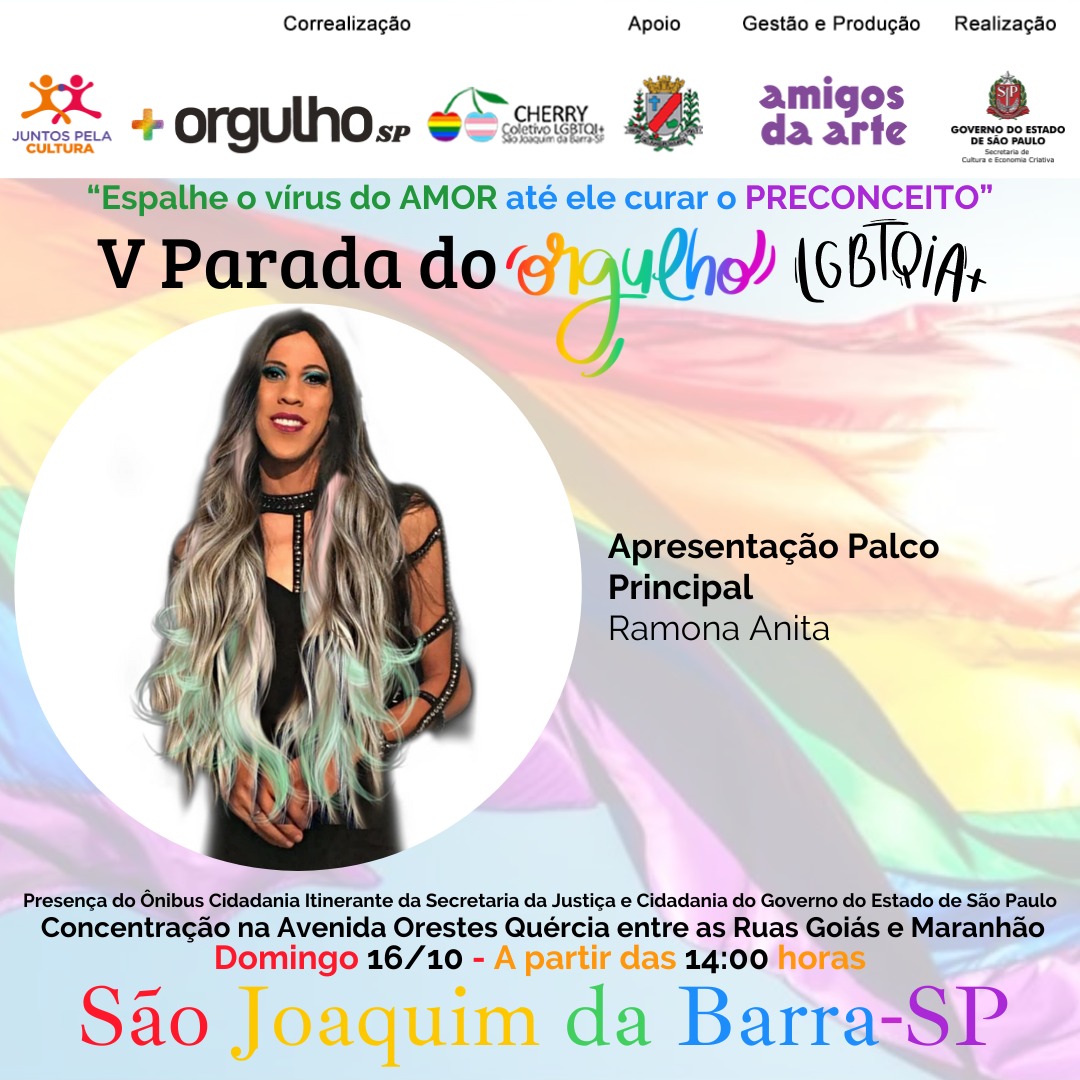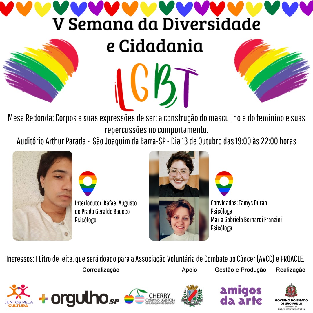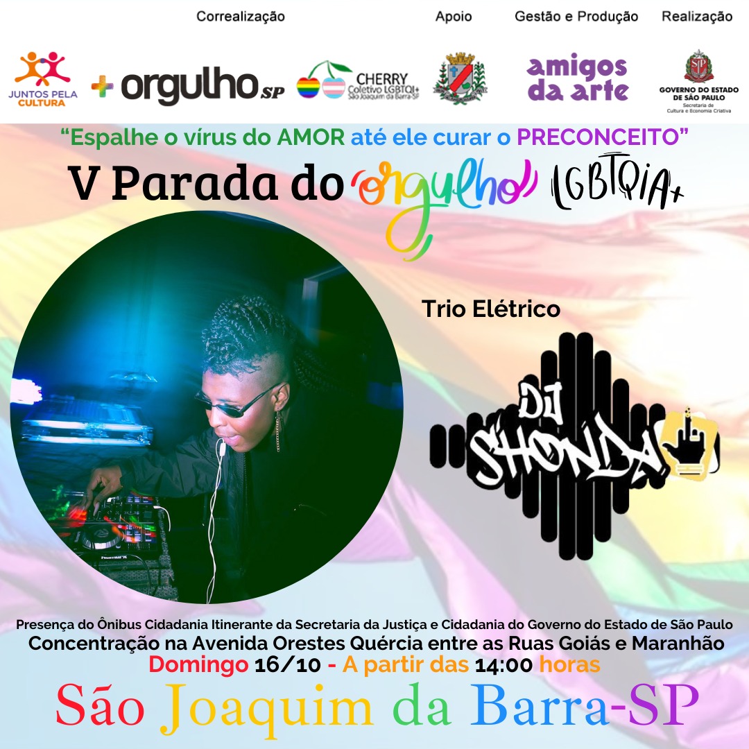 A Semana da Diversidade LGBT 2022 de São Joaquim da Barra começa nesta segunda-feira (10) e vai até o dia 16 de outubro (domingo). O evento é realizado pelo Coletivo LGBT Cherry, viabilizado pela Secretaria da Cultura e Economia Criativa do Estado de São Paulo, com apoio do Amigos da Arte.