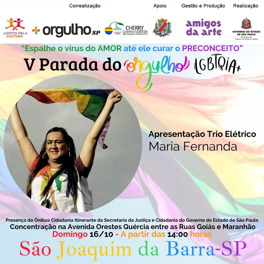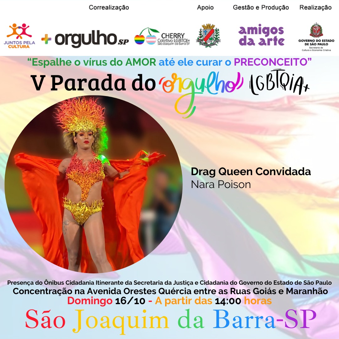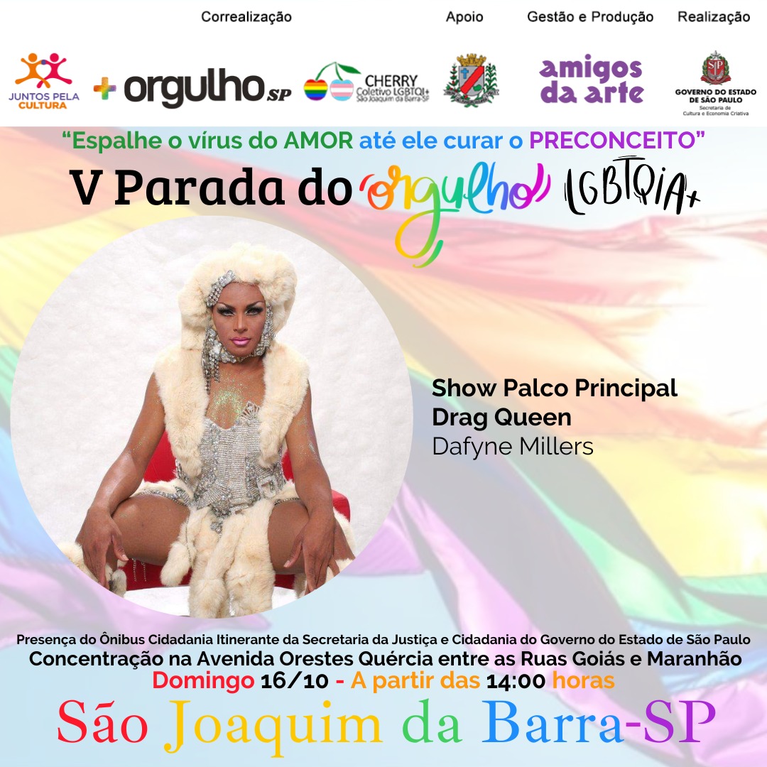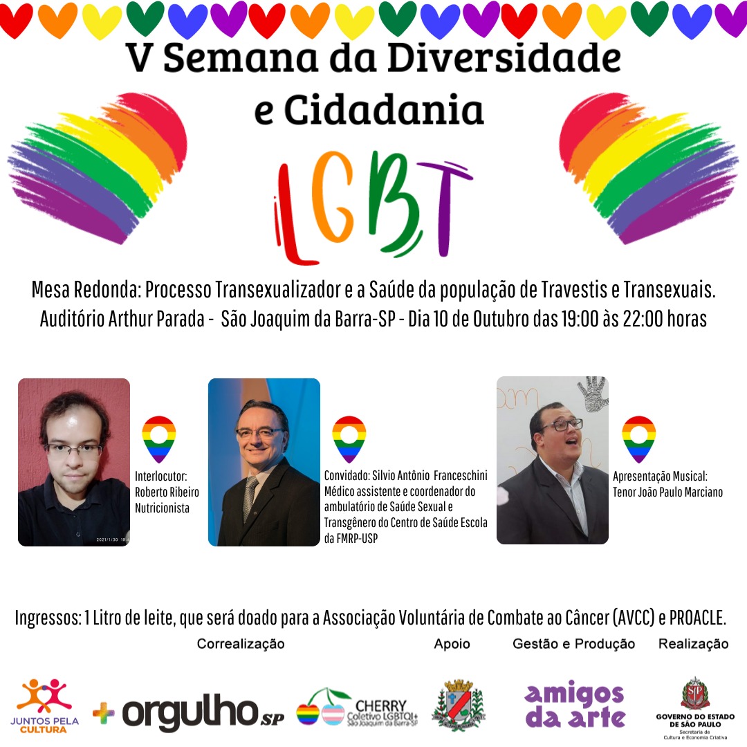 A Semana da Diversidade LGBT 2022 de São Joaquim da Barra começa nesta segunda-feira (10) e vai até o dia 16 de outubro (domingo). O evento é realizado pelo Coletivo LGBT Cherry, viabilizado pela Secretaria da Cultura e Economia Criativa do Estado de São Paulo, com apoio do Amigos da Arte.