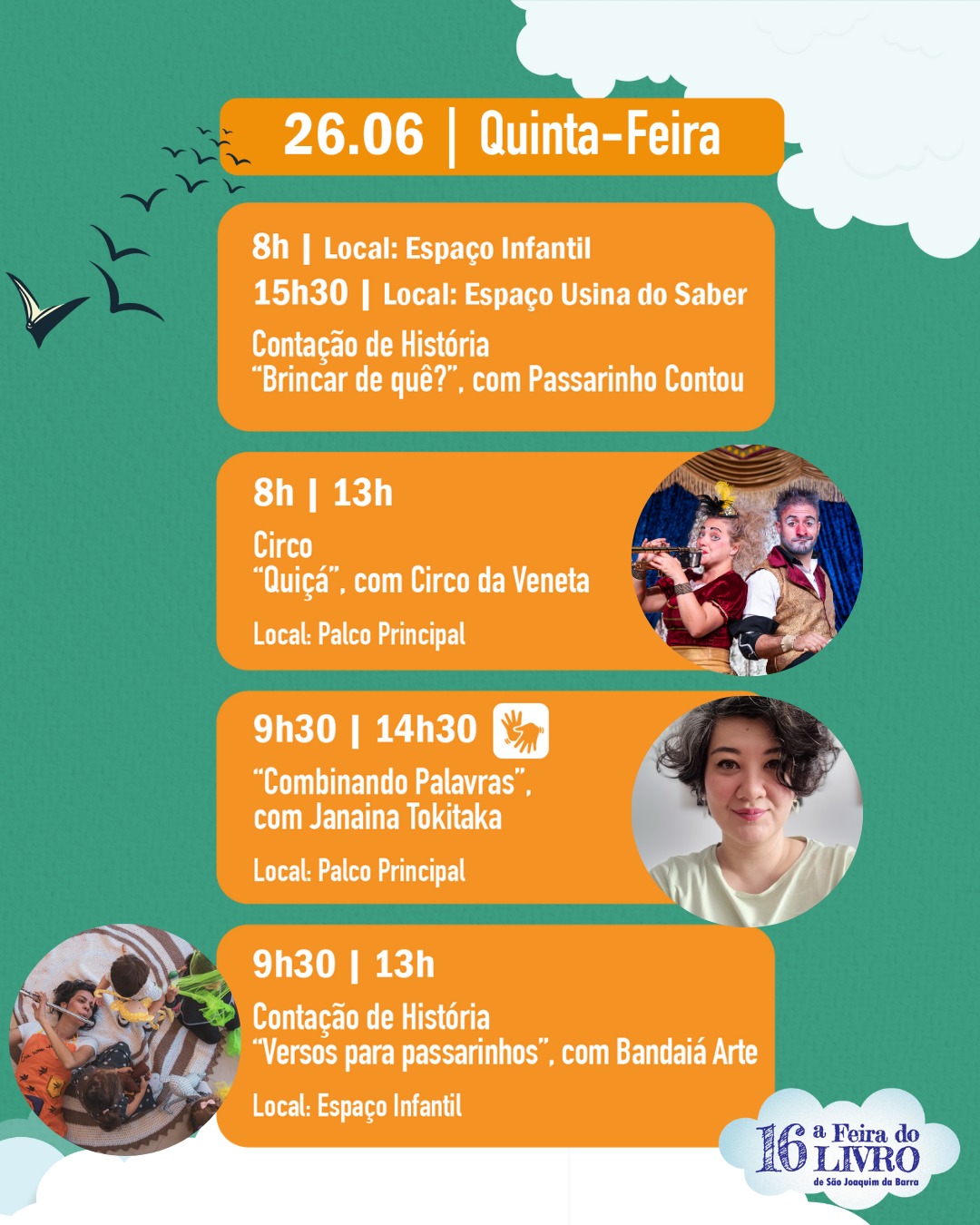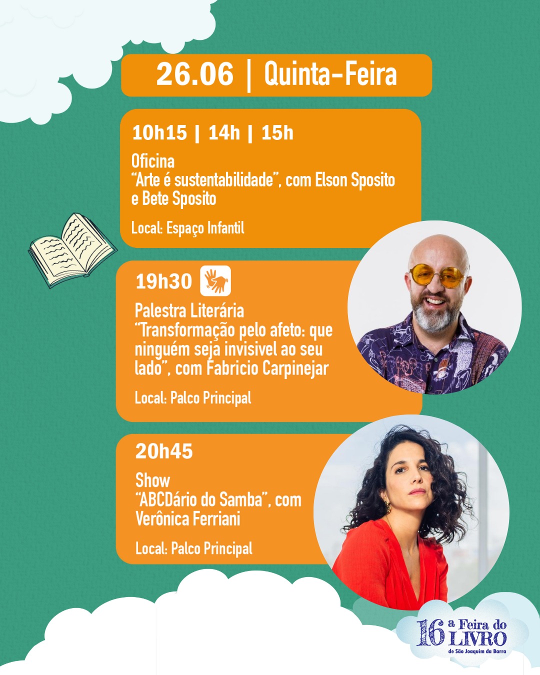 Programação da 16ª Feira do Livro de São Joaquim da Barra