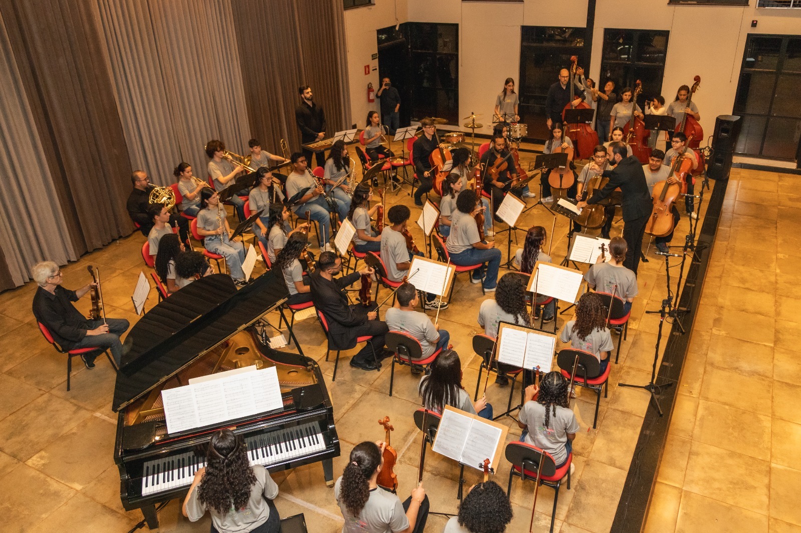 Na sequência, a Orquestra de Cordas apresenta duas obras do repertório internacional: Apache, de Carold Hardy Núñez, e Dragonhunter, de Richard Meyer.