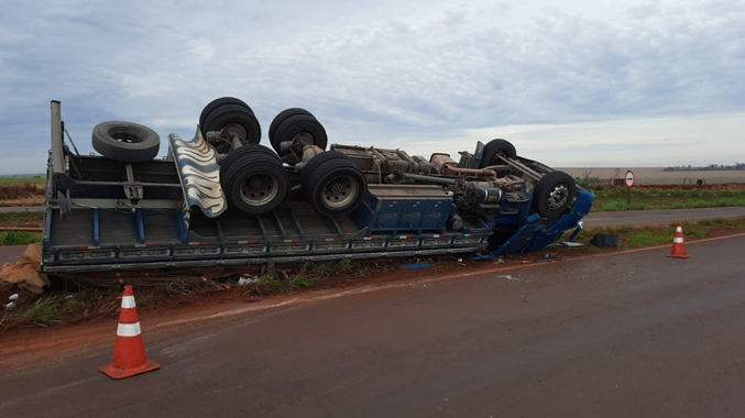 Caminhão carregado de mamão tomba em rodovia da região