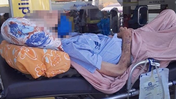 Aos 80 anos, idoso foi de maca ao banco realizar a prova de vida para não perder aposentadoria