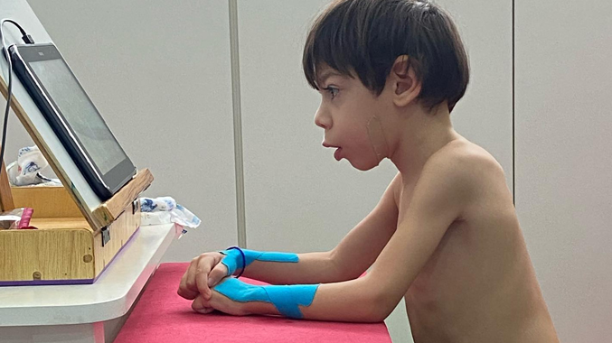 Pedro Ferrero de Lima é portador de microcefalia e precisa de um andador feito sob medida