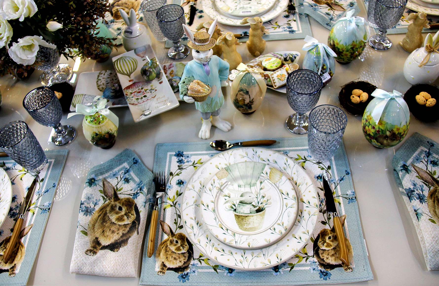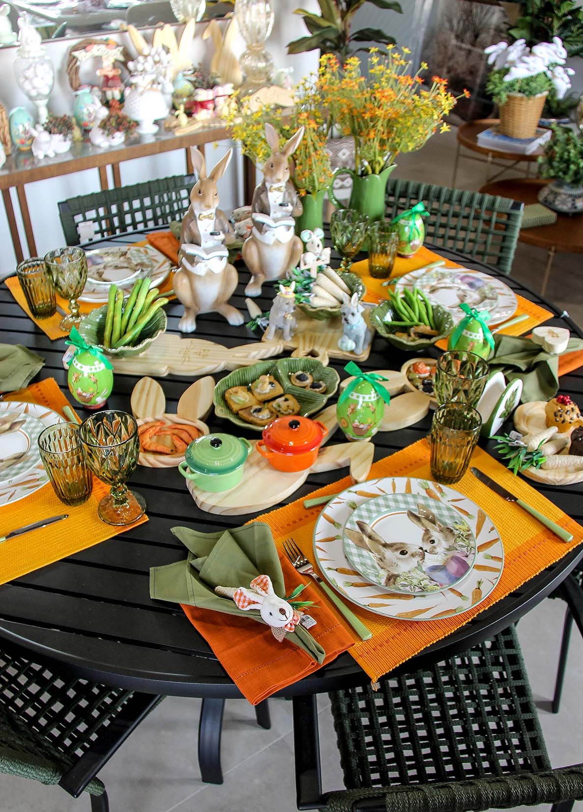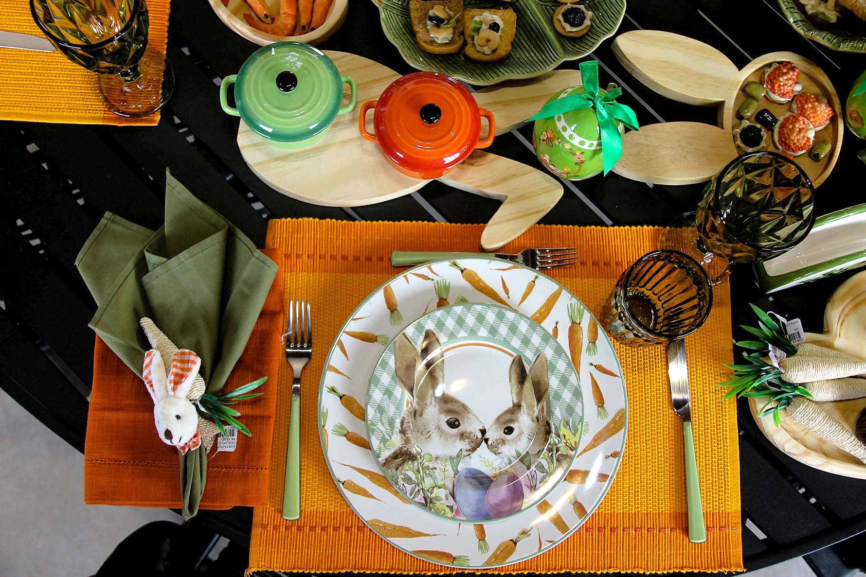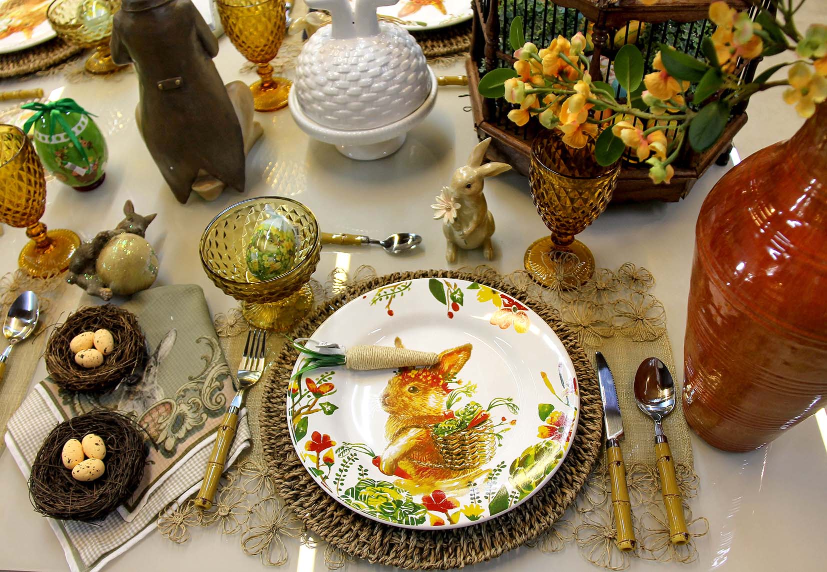A data, por si só, já possui um ar lúdico e ele pode sim entrar em cena, sem problemas. Para a decoração da sua mesa posta de Páscoa invista em detalhes divertidos e delicados como usar ovinhos coloridos, pratos e talheres especiais além de enfeites com coelhos decorativos.