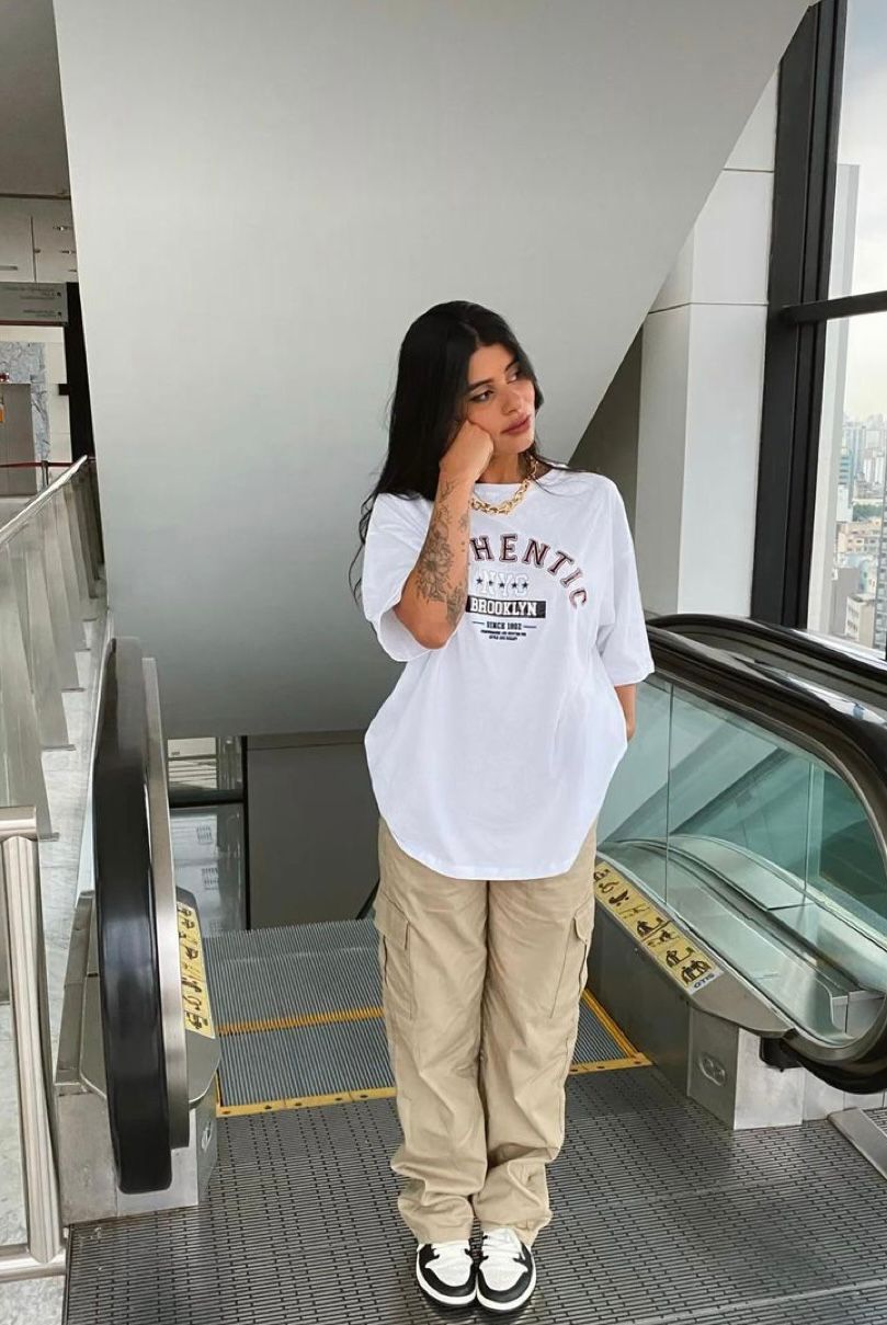 - Camiseta com calça cargo.