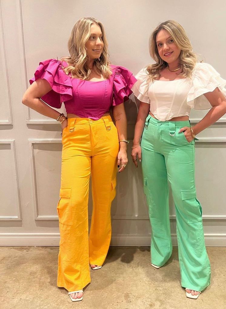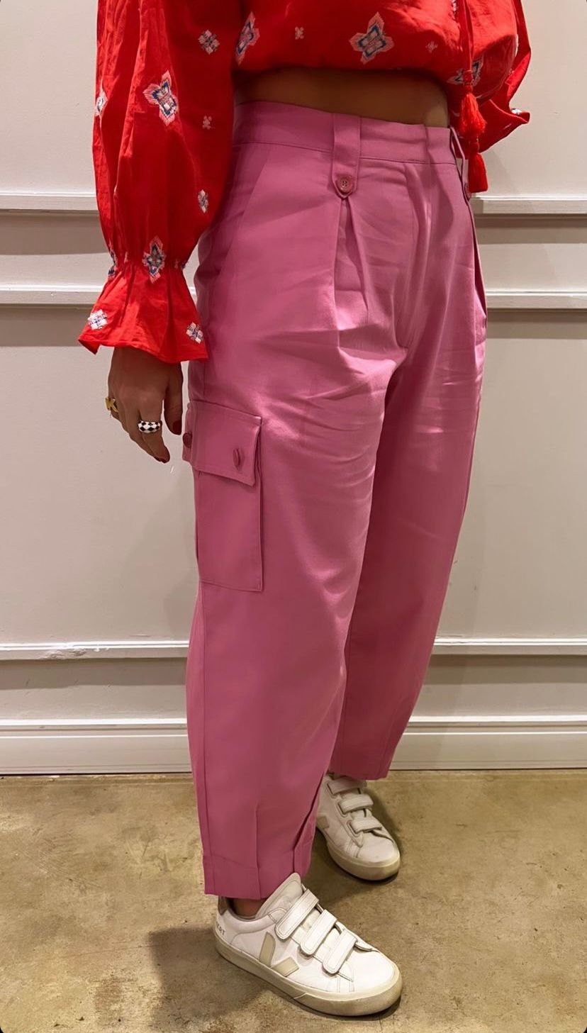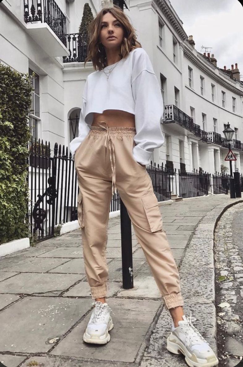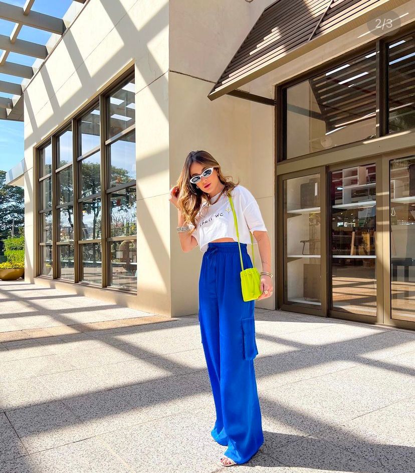 Mas o que é a calça cargo? Aquela calça mais larga, um pouco masculinizada com vários bolsos.