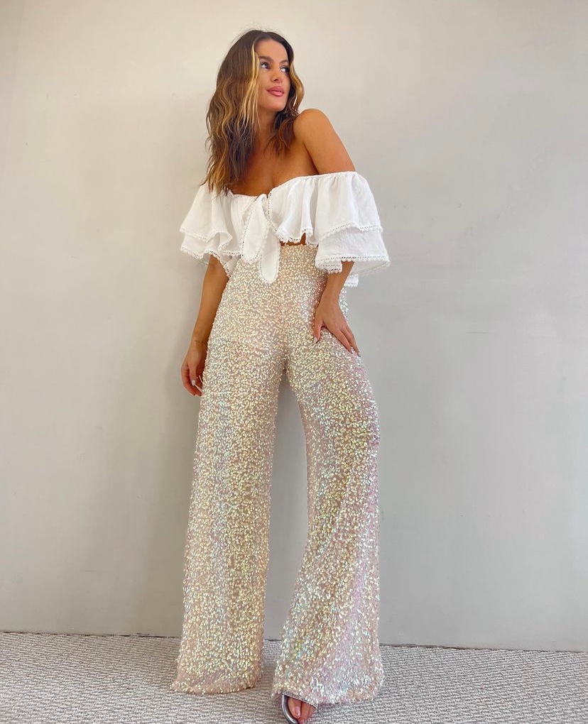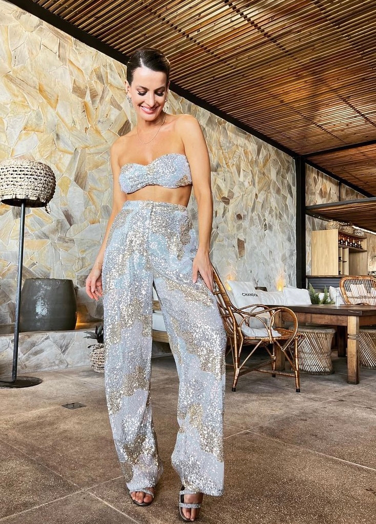 - Falando em paetê, essa tendência continua, em vestidos, calças, tops, shorts e conjuntos.