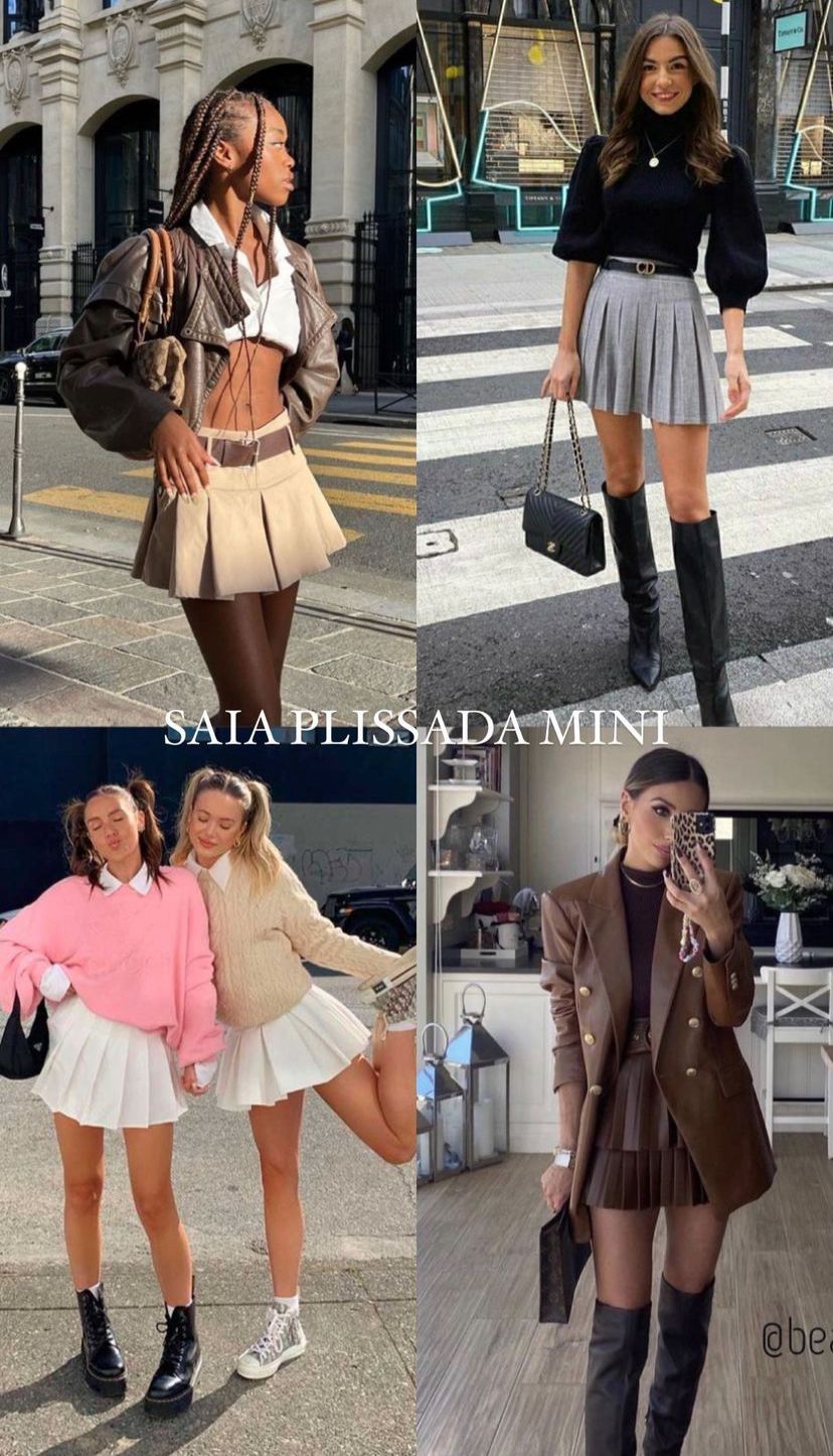 - A saia plissada mini, estilo colegial também voltou com tudo.