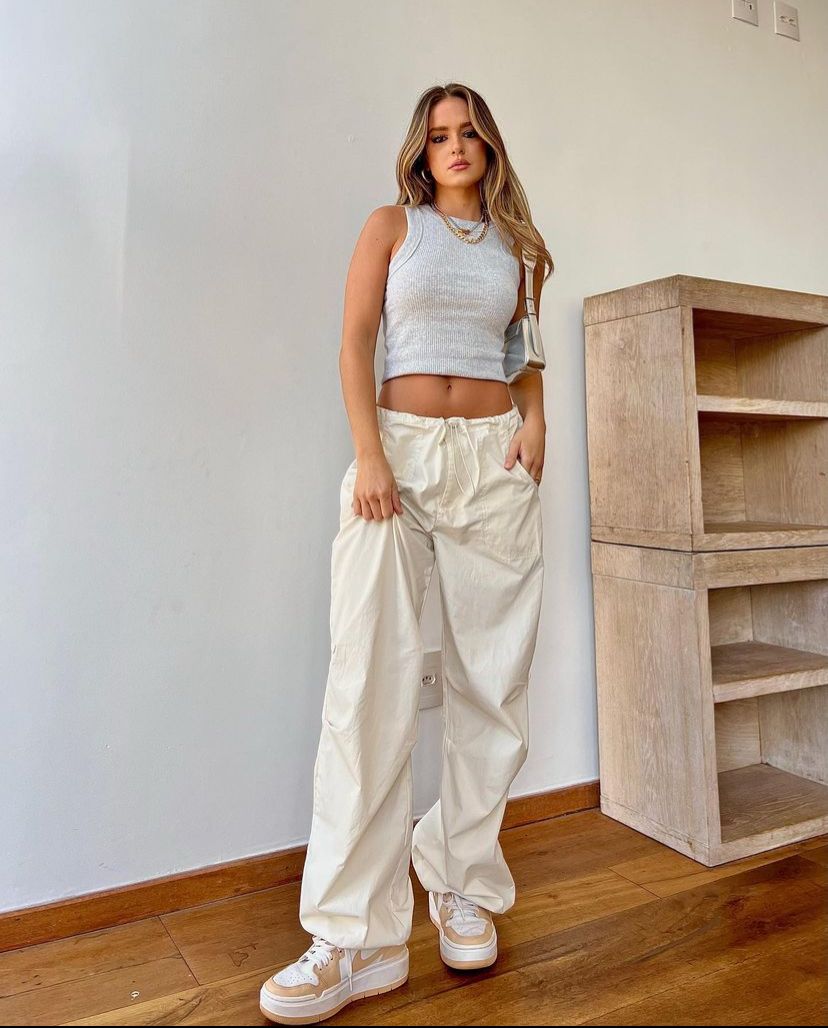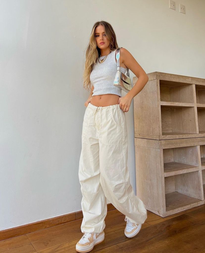 Parachute aquela calça estilo cargo geralmente com barra de elásticos, é um estilo Aesthetic que já vem bombando desde a estação anterior.