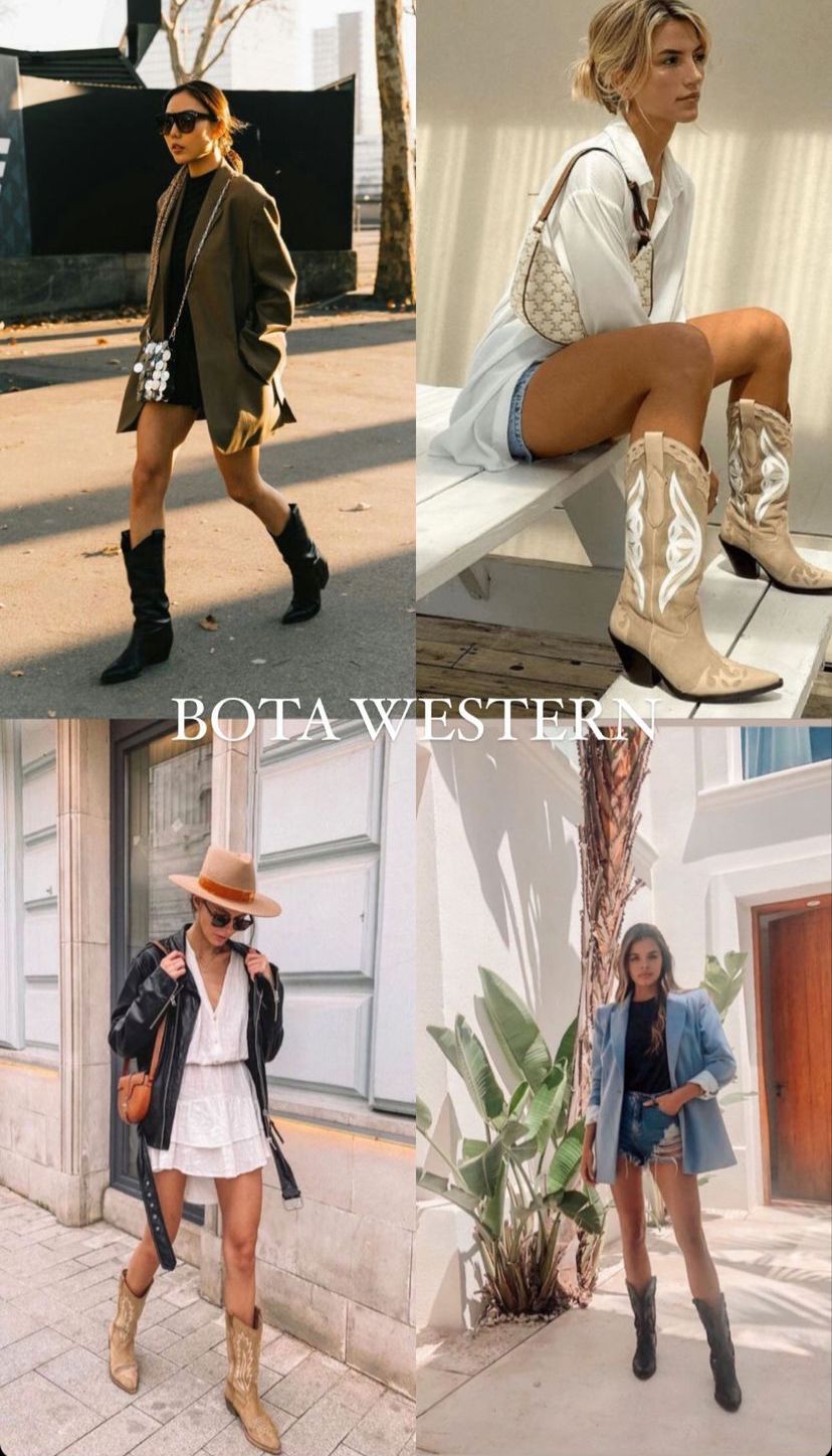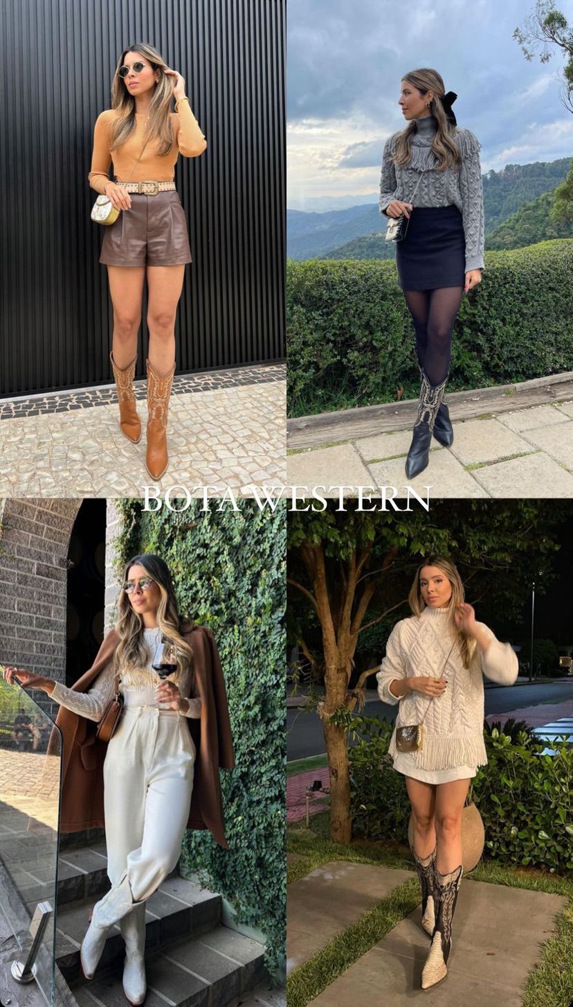 Quem ama influencers digitais como eu, já viu que a bota Western é a principal tendência de sapatos desse inverno. Deixa o look super estiloso. E pode ser usada com vestidos, saias, shorts e até por cima das calças. Com camisa, colete ou casaco.