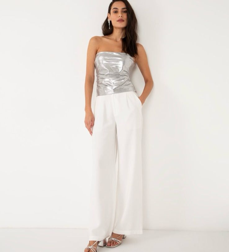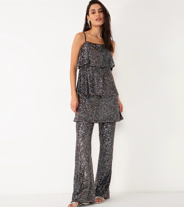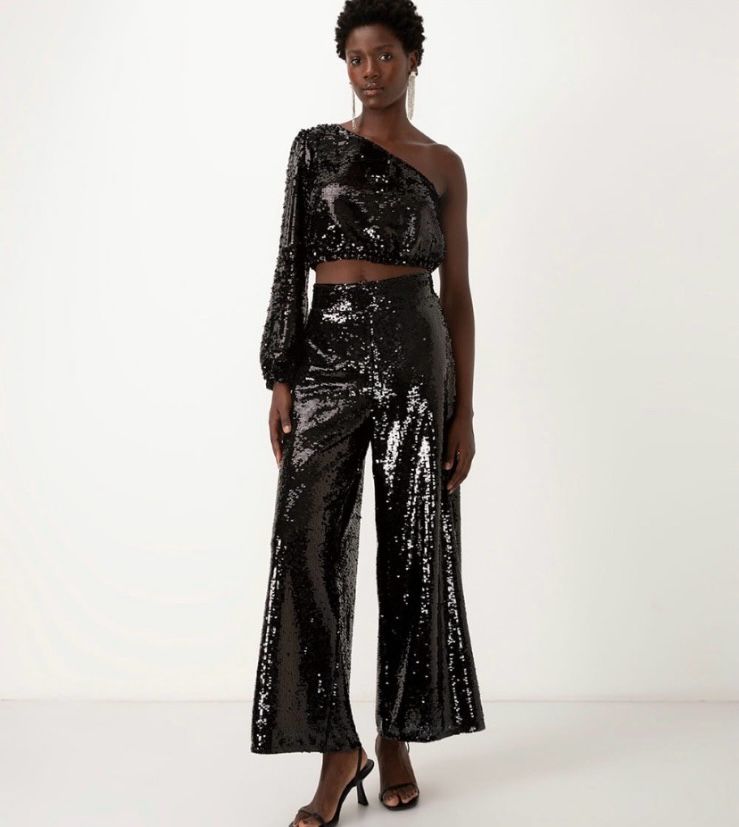 3. Brilho e Glamour: Se a ideia é brilhar, opte por um vestido ou conjunto com lantejoulas ou tecidos brilhantes. Um vestido prateado ou dourado com um corte moderno ou um macacão com detalhes brilhantes pode ser uma escolha arrojada e glamorosa para a noite de Natal.