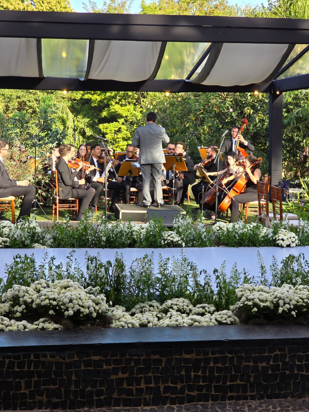 Do lado esquerdo da Capela montada especialmente para receber os mais de 500 convidados, apresentava-se a Orquestra Sinfônica e Coral de Ribeirão Preto.