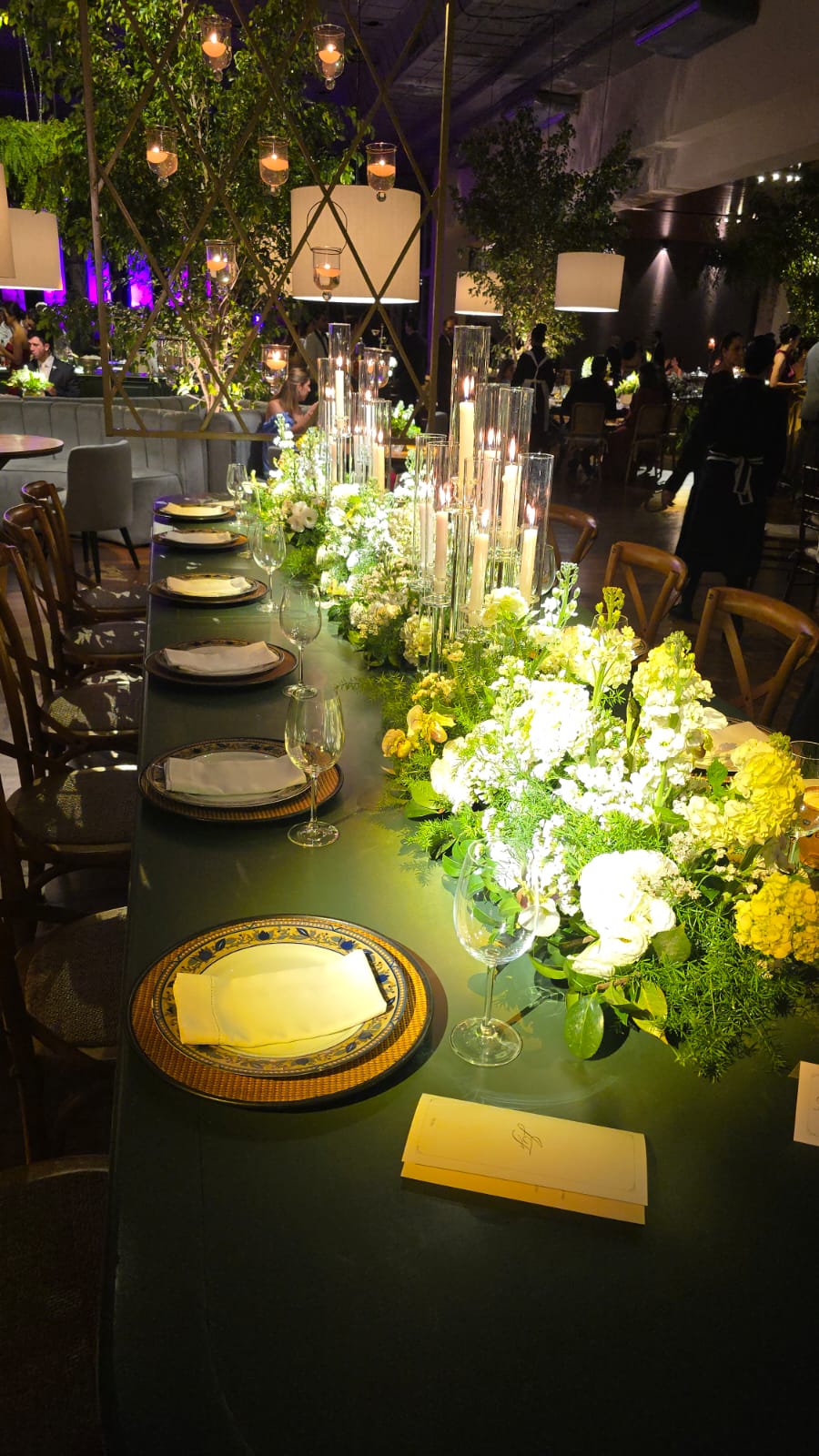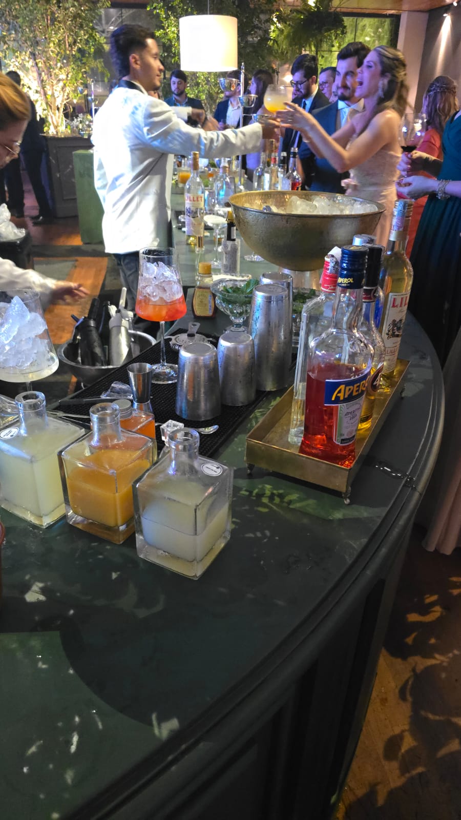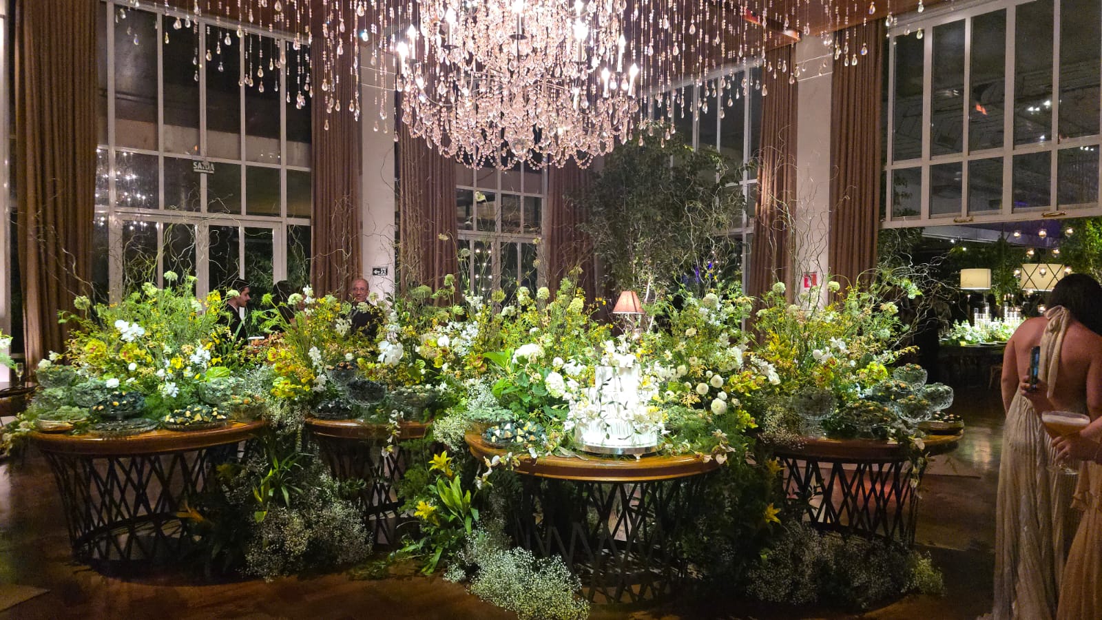 Após o “sim”, os convidados foram recepcionados no sofisticado Espaço Golf, que foi transformado em um verdadeiro cenário hollywoodiano. Castiçais de prata, velas, orquídeas e lisianthus brancos compunham uma decoração deslumbrante e clássica. No buffet, o requinte reinou absoluto: coquetel à la française, aparadores gastronômicos, Ilhas de frutos do mar fresquíssimos, jantar impecável, sobremesas finas e um serviço de petit four encerrando com charme a celebração. Rótulos estrangeiros circularam entre os convidados, garantindo um brinde à altura da ocasião.