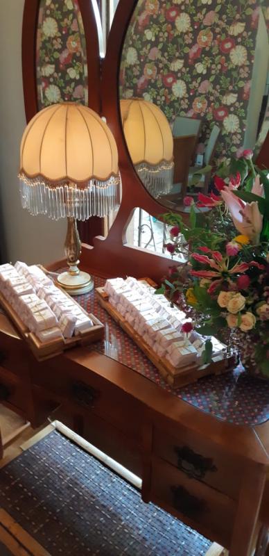 Na saída um buffet café closing service enquanto os vallets traziam os carros. Entre as delicadezas distribuídas com os "bem casados" pratinhos embrulhados com rendas douradas traziam suspiros com raspas de limão e em cada um mensagens de fé. Os noivos passam a lua de mel em Madri.