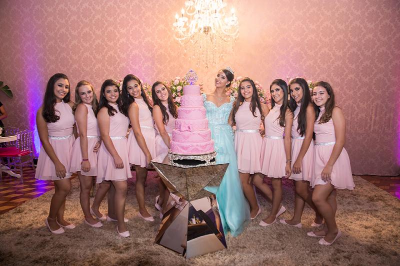 Isadora optou por fazer o cerimonial tradicional das debutantes,com a troca do sapato pela boneca, a valsa com o pai, o avô, os padrinhos e o namorado.