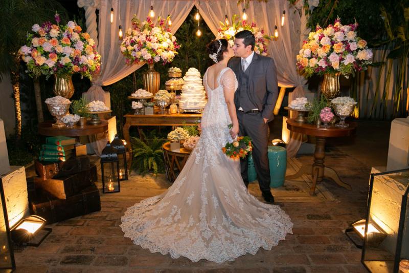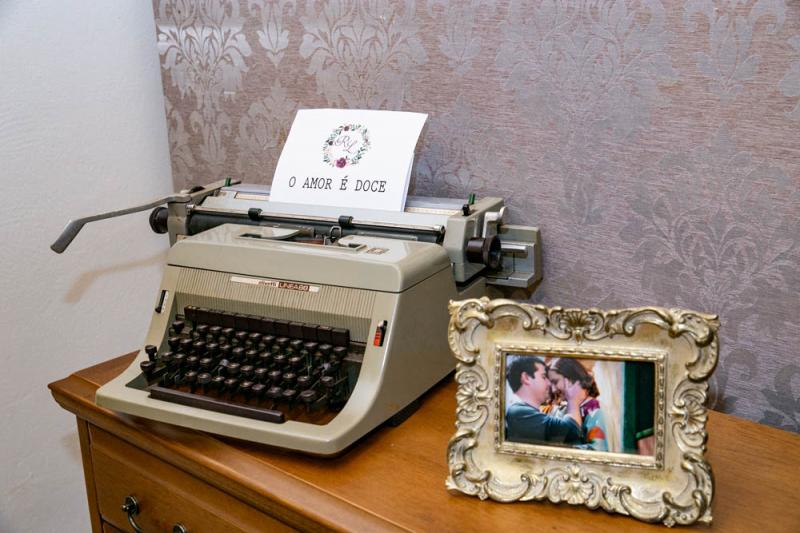 O casamento foi acompanhado pela cerimonialista Thaline, e aconteceu como sonhado pelo casal, com a cerimônia realizada na Igreja Matriz de São Joaquim da Barra e celebração da festa no charmoso espaço Casarão Eventos, escolhas que conversaram perfeitamente com o estilo escolhido da decoração, montada pela competente decoradora Mariluce Guerra e móveis e utensilios da Viena Móveis e Locações. “Eu passei cerca de um ano pesquisando sobre decoração no Pinterest (rsrs). Não queria algo clássico, queria algo mais voltado para o boho chic e o vintage. Peguei objetos antigos para usar, como a máquina de escrever e a de costura da minha avó, tinha até uma floreira vintage, que tá na nossa família há 60 anos...” conta a noiva.