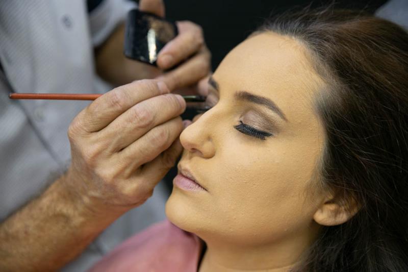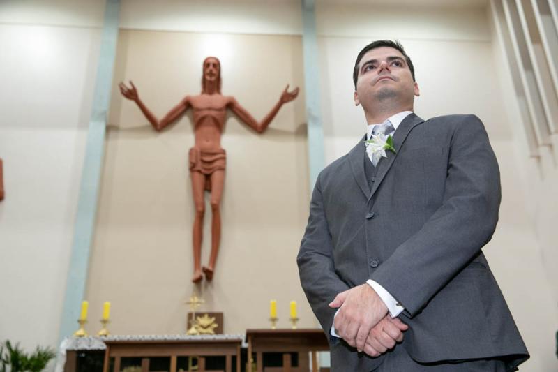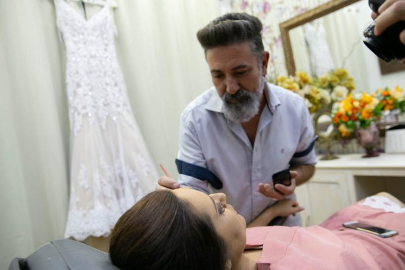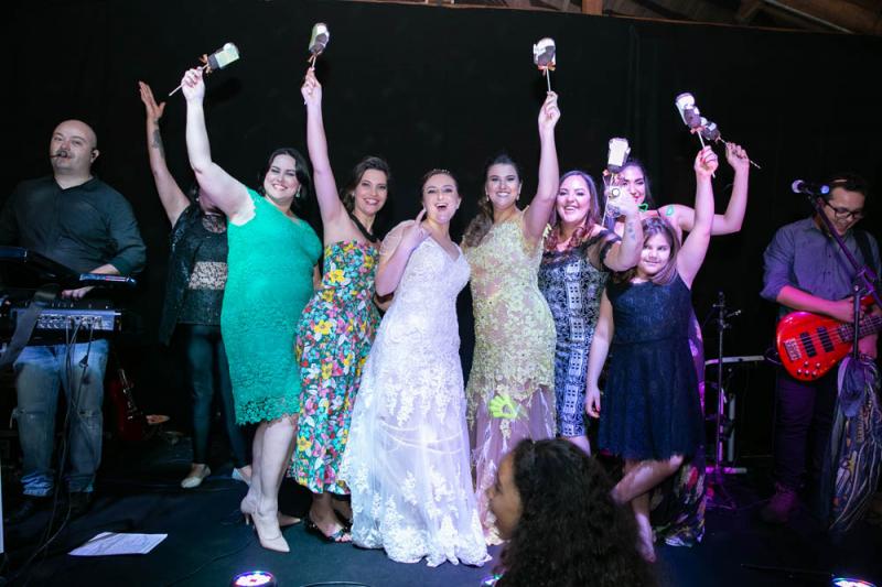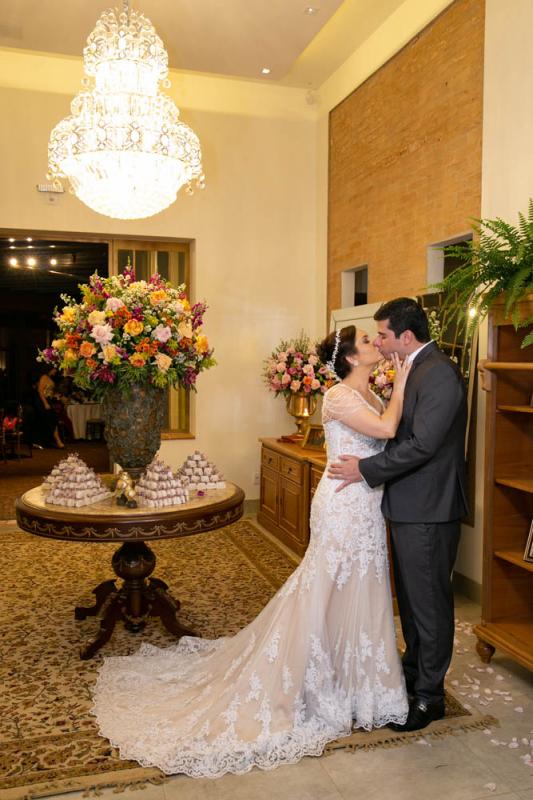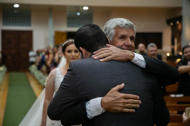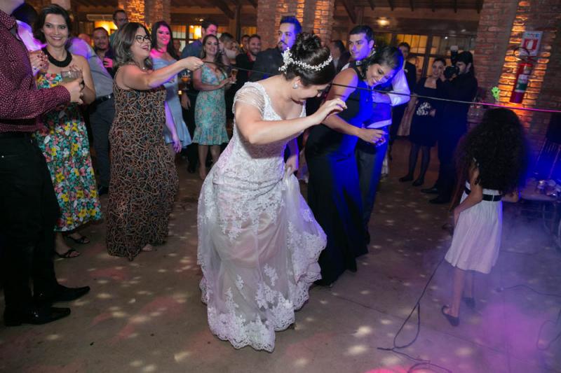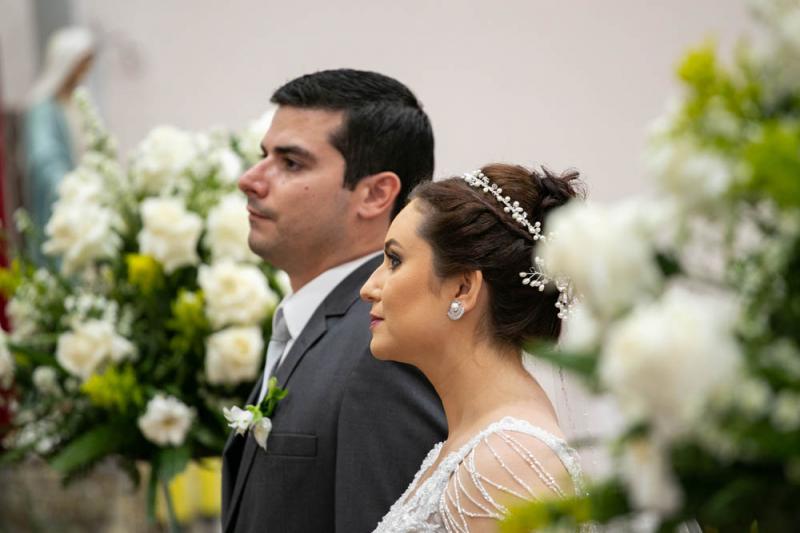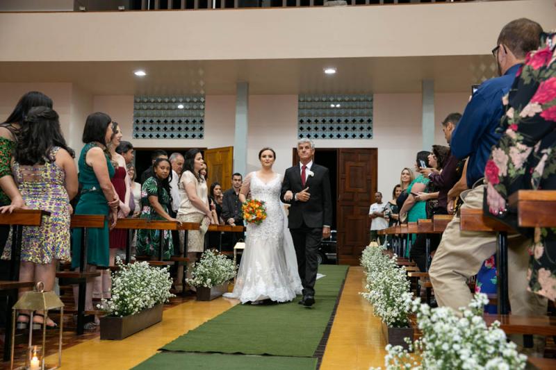 A beleza da noiva ficou a cargo dos experts Paulu's Cabeileireiros e J.A. Menegoti Maquiagens, de Guará e o vestido, semi-sereia, com forro nude, tule e renda rebordadas com pedras Swarovisk é da Lourdes e Dita Noivas.