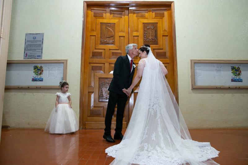 Raquel e Luiz se conheceram no trabalho: “Passei anos admirando de longe aquele moço bonito (com sotaque paulistano, rsrs), inteligente e super sério” comenta a noiva.