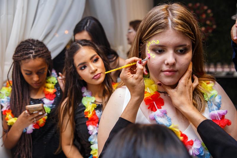 O grande dia das debutantes teve início no ESPAÇO LORENA ALVES, onde realizaram a maquiagem e os penteados e foram muito paparicadas pelas profissionais do salão.