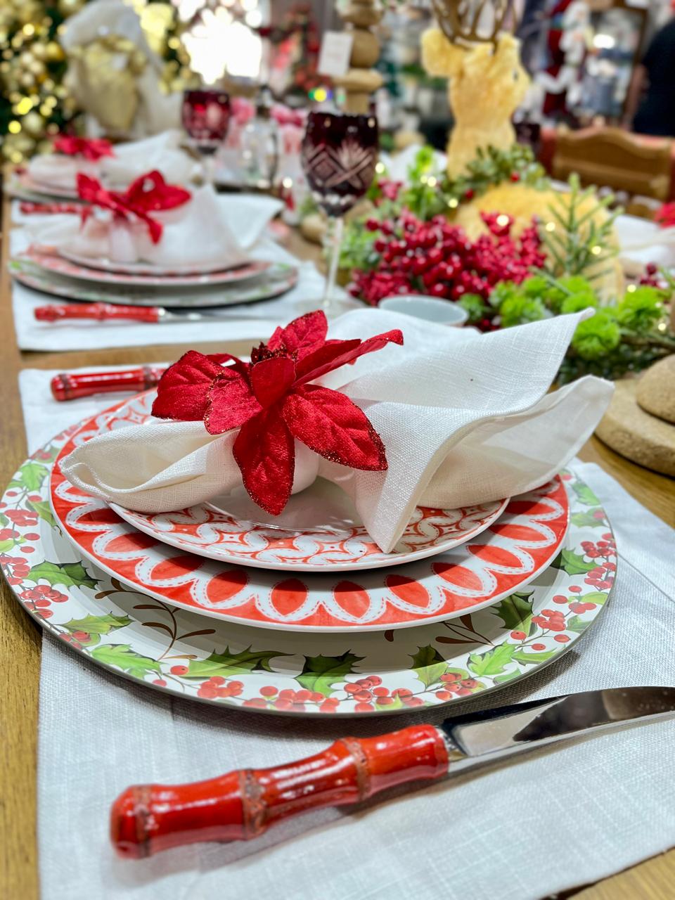As vitrines e os espaços da loja estavam deslumbrantes: mesas postas com requinte, árvores de Natal exuberantes, presépios e ornamentos cuidadosamente escolhidos compunham o cenário que celebrava o nascimento do Menino Jesus e resgatava o espírito familiar e afetivo do Natal.