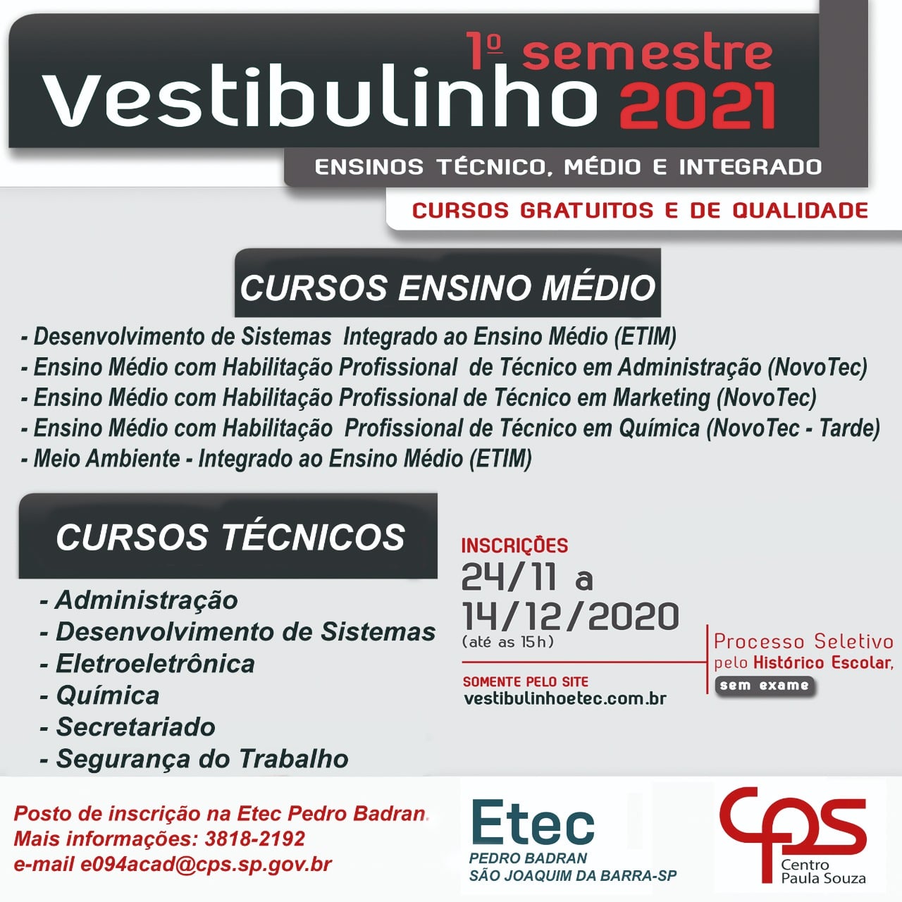 Começaram as inscrições para as ETECs do Estado de São Paulo, incluindo as da região.