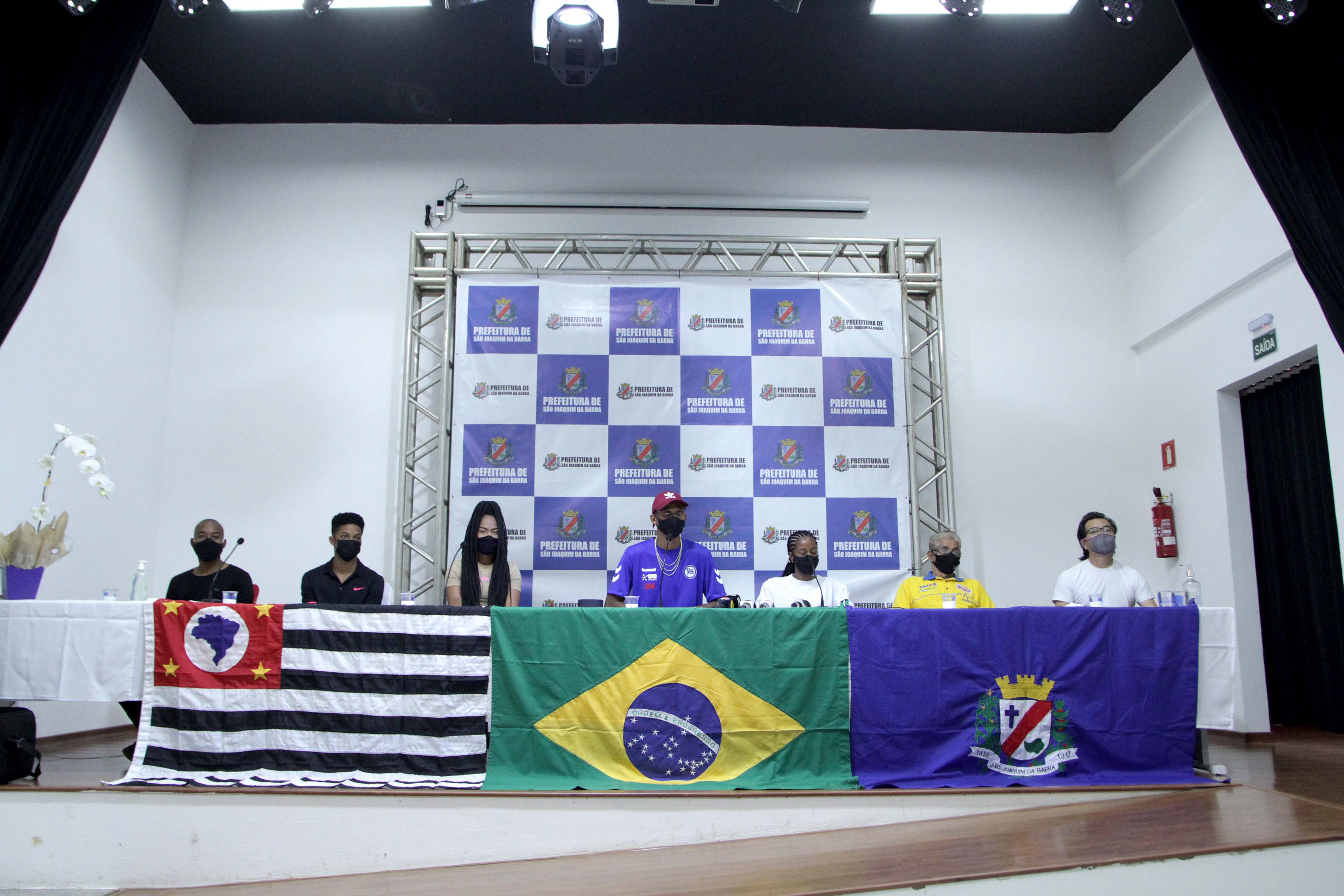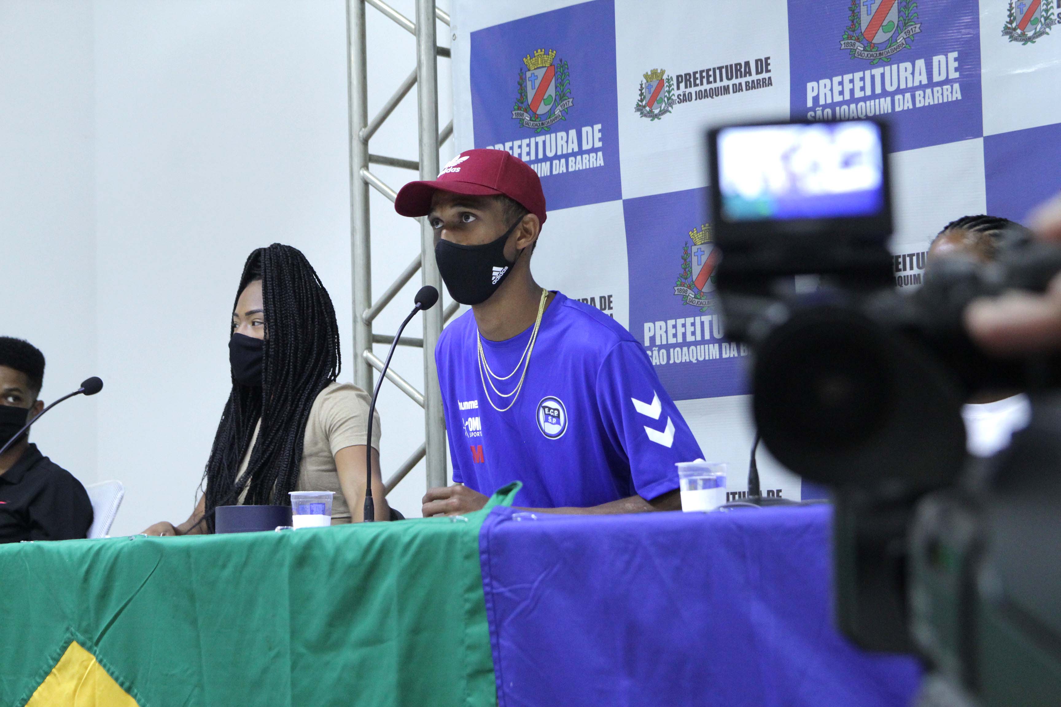 O atleta Alison dos Santos, medalhista de bronze nas Olimpíadas de Tóquio nos 400 metros com barreiras, participou de coletiva de imprensa na tarde desta sexta-feira (13) em São Joaquim da Barra, sua cidade natal.