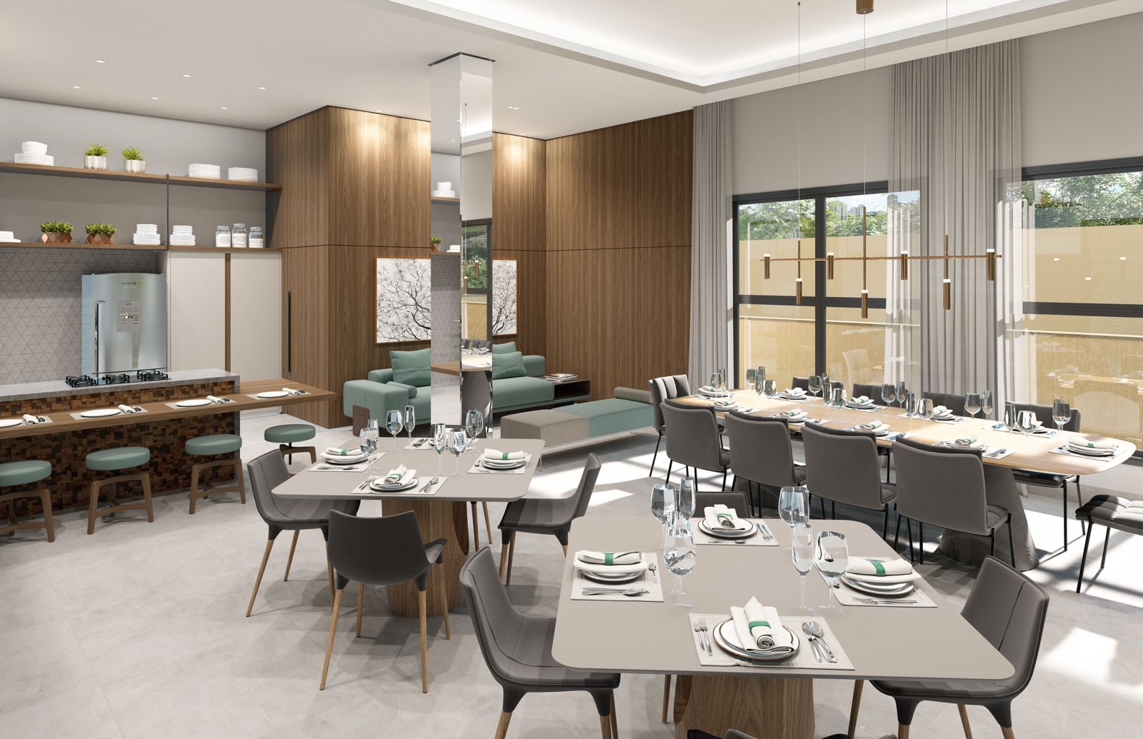 Todos os ambientes serão entregues equipados e decorados, prontos para uso.