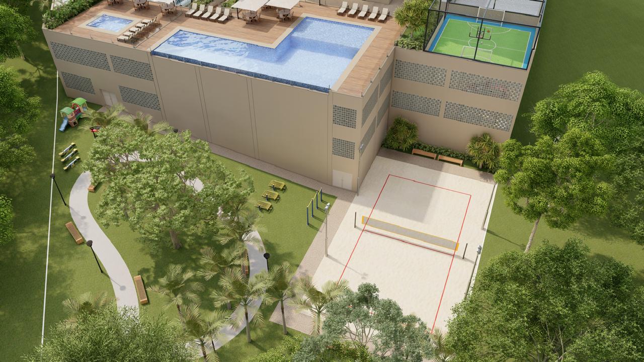 O empreendimento prioriza espaços destinados à prática esportiva, promovendo saúde, interação social e momentos de lazer.