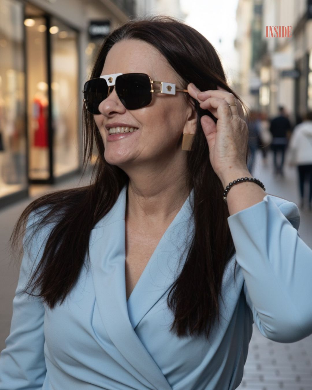 Além de marcar presença no visual, os óculos oversized oferecem maior proteção solar e equilíbrio nas proporções do rosto, destacando os traços com naturalidade e estilo. São peças versáteis, que combinam tanto com looks clássicos quanto com produções mais ousadas.