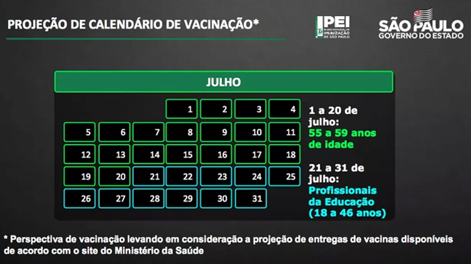 A imunização será expandida para professores de todas as faixas etárias